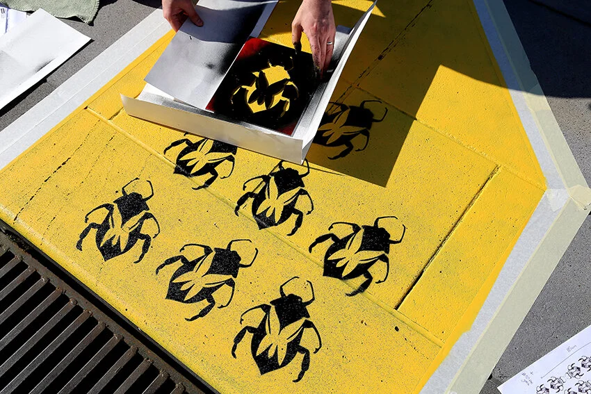 Melbourne Water asked us to help ‘Save The Platypus’ by painting 10 drain lids in the township of Belgrave, with the aim of reminding local community members about the environmental effects stormwater rubbish has on dwindling local platypus populations.