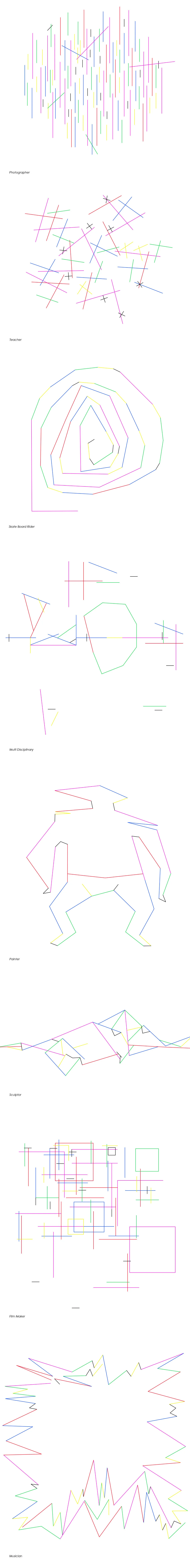 While initially directed by the random number rolled by the die, the direction of a drawing is up to the artist. Despite these drawings technically being directed by the die, creativity blossoms in the final expression of the drawing. Furthermore, no two artists can roll the same random sequence of numbers, which means each artwork is rendered unique.