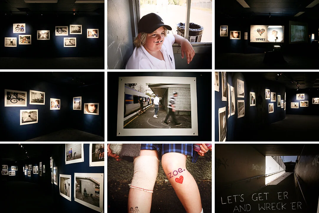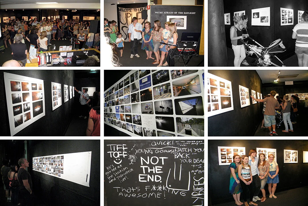 tiffaney bishop & the SCUMPUPS engaged young people and adults in art and cultural projects that dealt with contemporary youth issues. It developed out of a one-off workshop initiated by a group of 5 thirteen-year-olds (Zoe, Jacqui, Anna, Charlotte and Trentt), all of whom had experienced random, unprovoked violence in their daily lives. These young people wanted to express the way they felt about their community experiences of violence through photography. Together, tiffaney bishop & the SCUMPUPS made photographic artworks that were exhibited in two public exhibitions: We’re Afraid of the Daylight in 2009 and a second called Station Rats and other Scumbags in 2010. While these contemporary bodies of artwork dealt with complex social and cultural issues, the works avoided the more clichéd presentations of young people as dangerous or in danger. Instead, the work celebrated young people and championed their legitimate status as citizens – and artists! It offered developing young artists and activists the opportunity to work collaboratively within a professional, contemporary, artistic environment as well as the opportunity to develop social, cultural and political agency within the broader community.